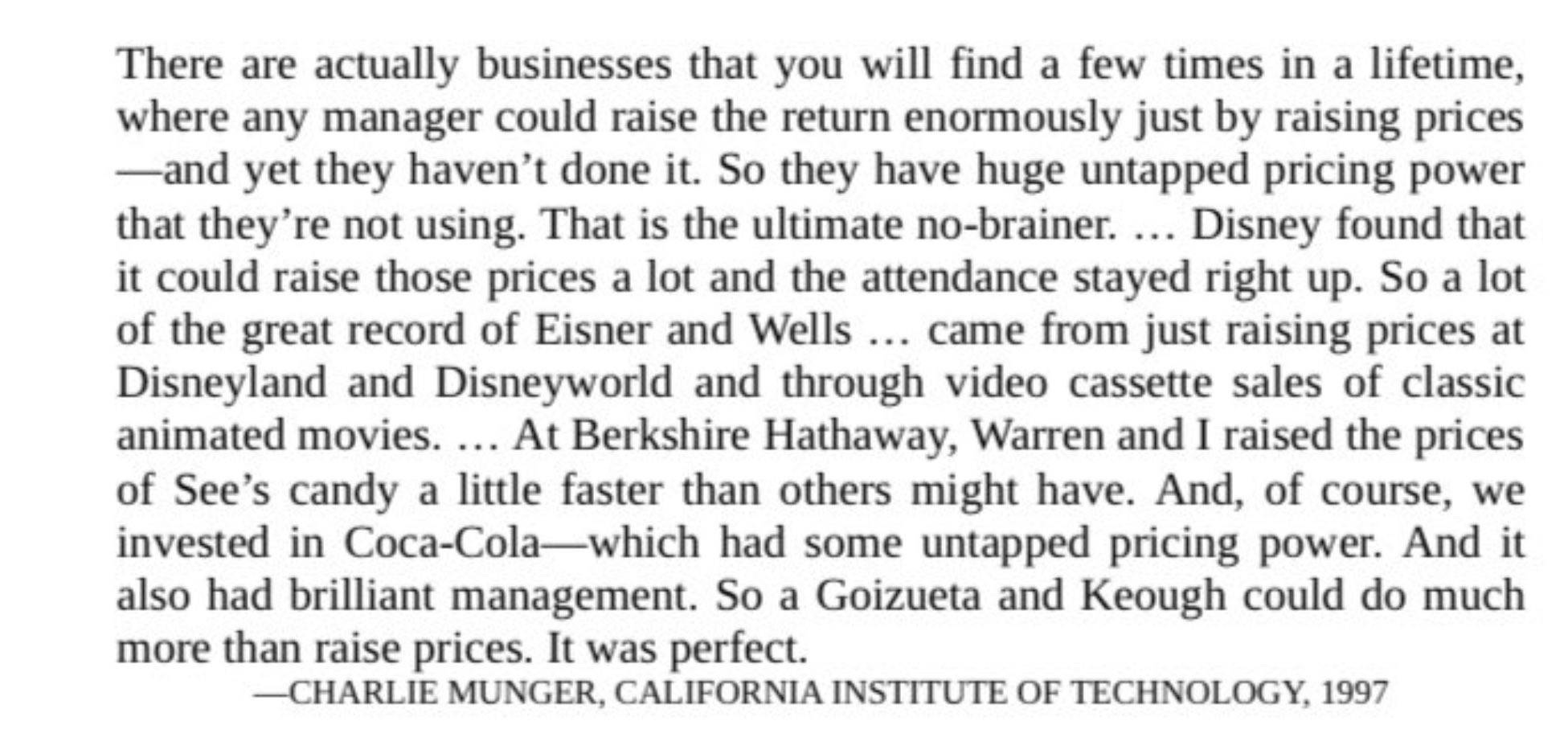 Pricing power was a huge component of their “moat” concept. If it matters this much to them, then it should matter twice as much to you.