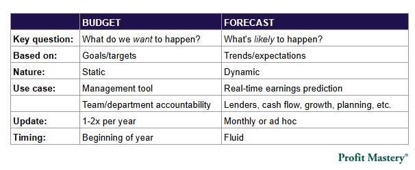 This had me thinking about a key financial distinction that’s not often discussed: budgeting vs. forecasting. These tools are not the same and therefore the terms should not be used interchangeably.