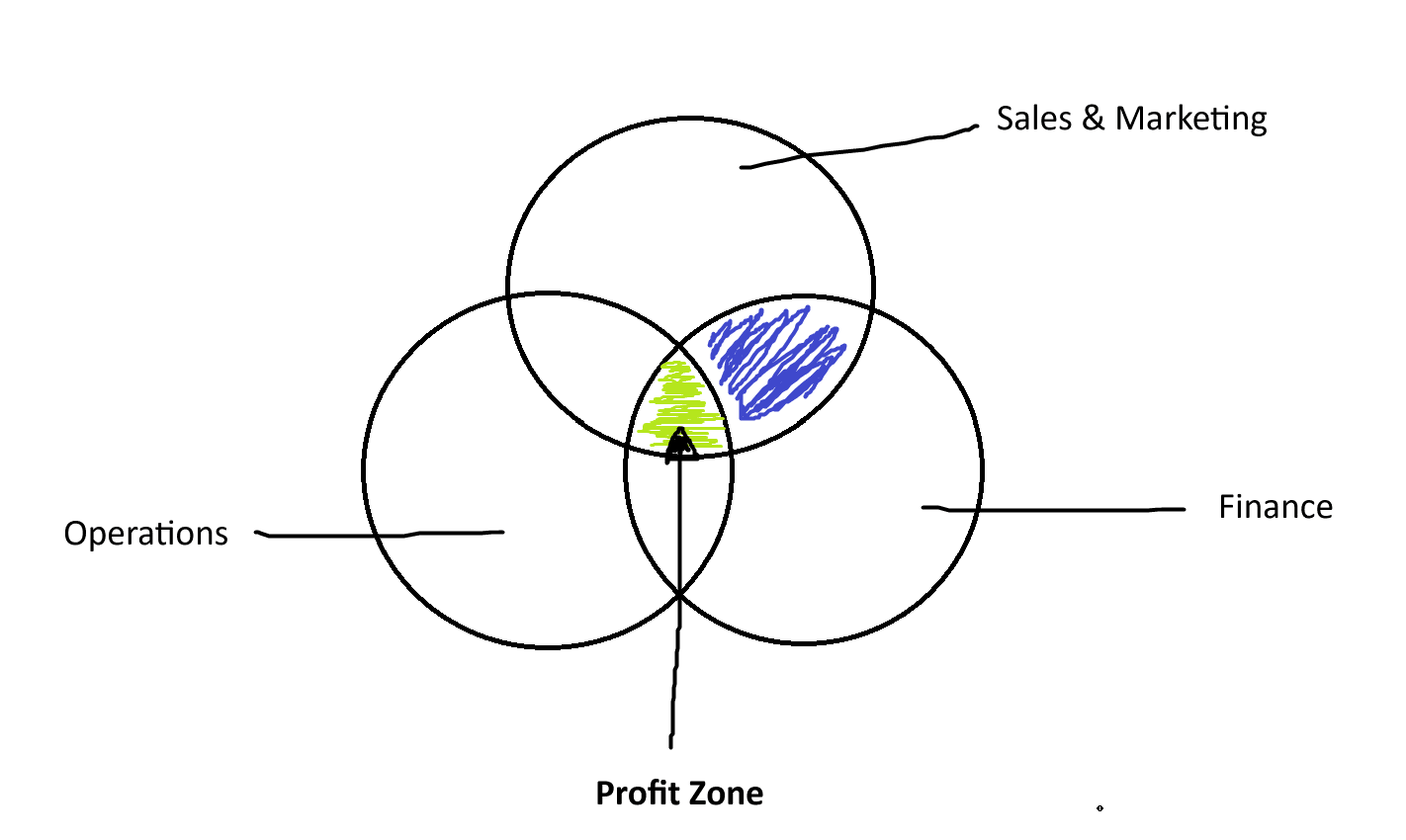 Let’s start with just the sales / marketing / finance (blue shaded area) circles.